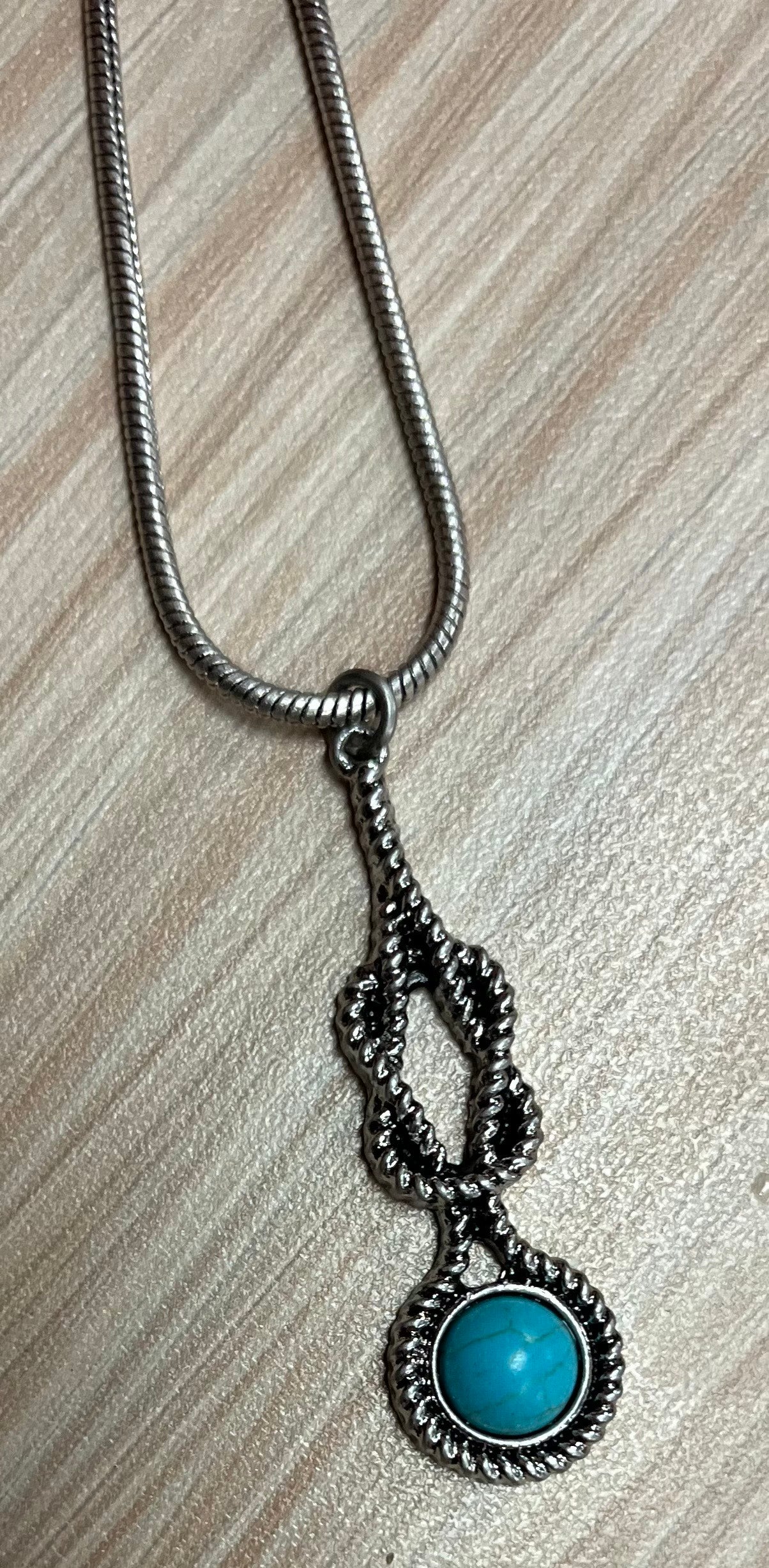 Justin Necklace Snake Chain W/Square Knot and Faux Turquoise Stone Pendant