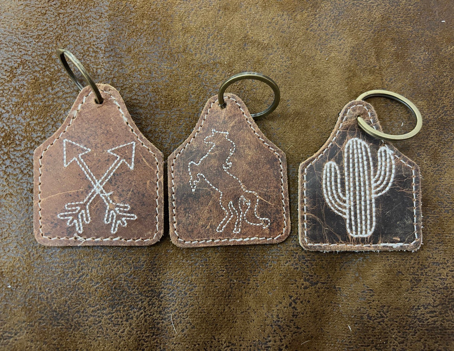 Rustic Leather & Cowhide Keychain